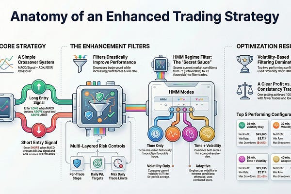 MACD/ADX Crossover With HMM Filtering ($38K on 18 trades and 1 contract in 4 months)