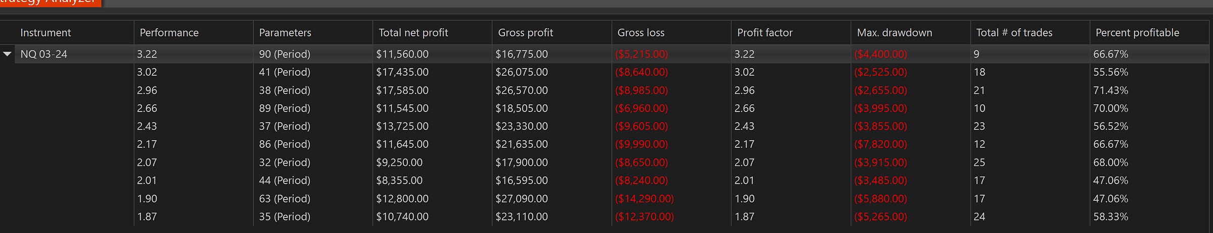 Important: There is no guarantee that these strategies will have the same performance in the future. I use backtests to compare historical strategy performance. Backtests are based on historical data, not real-time data so the results shared are hypothetical, not real. Even with forward tests, there is no guarantee that performance will continue in the future. Trading futures is extremely risky. If you trade futures live, be prepared to lose your entire account. I recommend using these strategies in simulated trading until you/we find the holy grail of trade strategy.